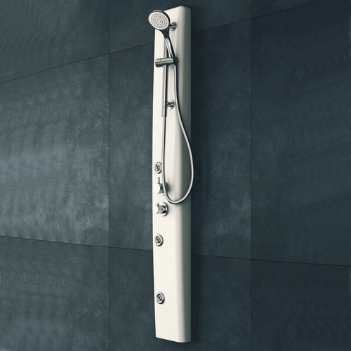 JUMP EASY White Acrylic structure 3 Vertical jets Thermostatic mixer with diverter Hand shower with sliding rail